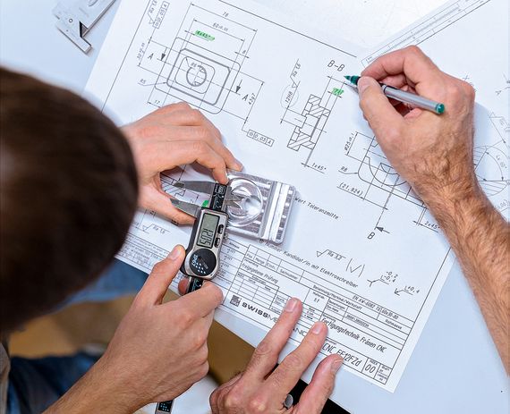 During training in the apprenticeship workshop, Salzmann repeatedly looks away from his computer screen and concentrates on a technical drawing on his desk. For non-professionals, the labyrinth of black and white lines, circles, angles, and units of measurement may be difficult to comprehend, but Salzmann quickly detects in it a pressure equalization cap for hydraulic systems. He now has to recreate this with high precision in 3D in the CAD software. Once this task has been solved, the next component follows. Be it a go-cart chassis, a valve spindle, or a swivel castor.